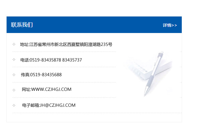 傳真:0519-83435688    郵編:213135    網址:WWW.czjhgj_com.jinwangkj.com    電子郵箱:JH@czjhgj_com.jinwangkj.com